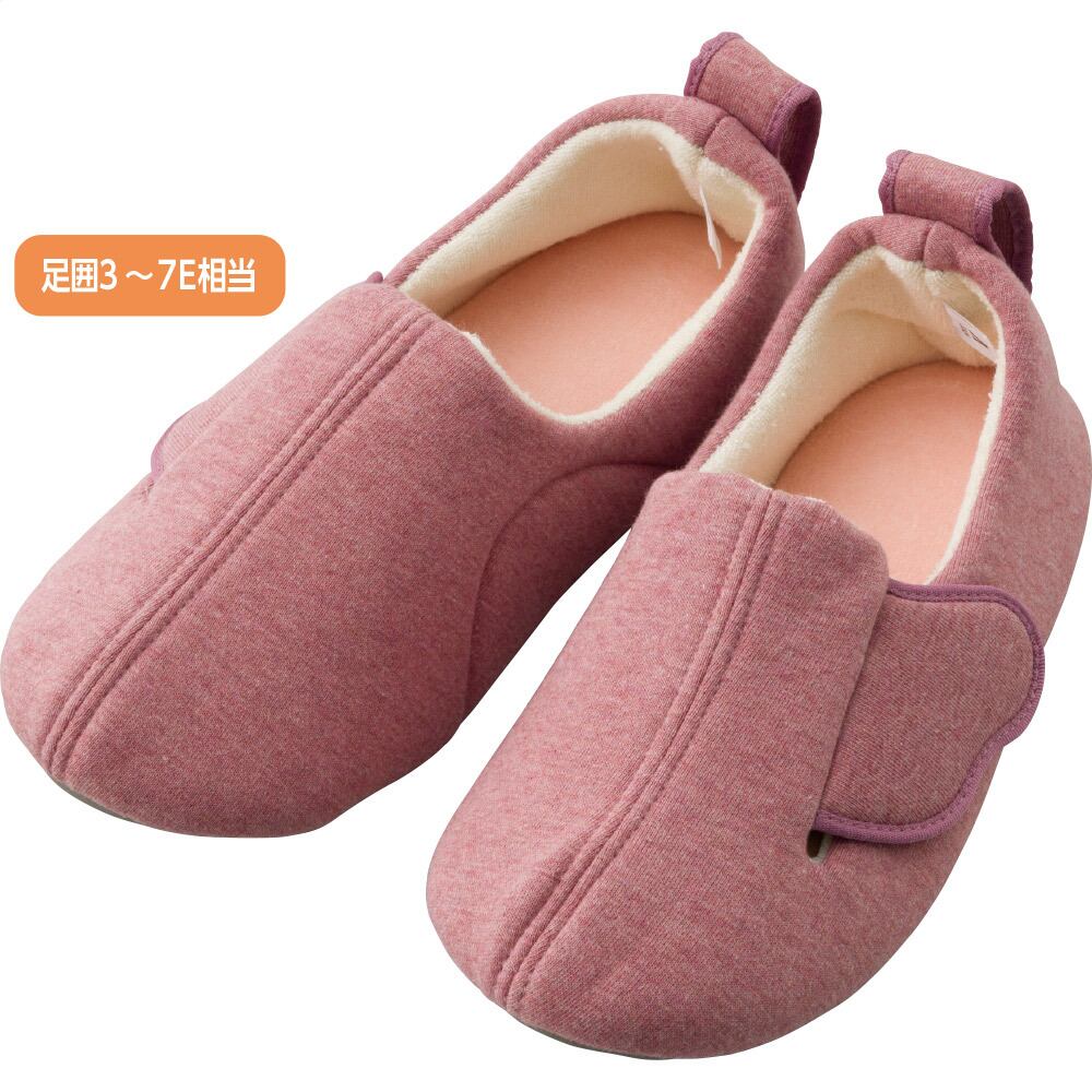 スリット入りで大きく開く履き口。ワンタッチテープで足囲サイズ調整ができます。