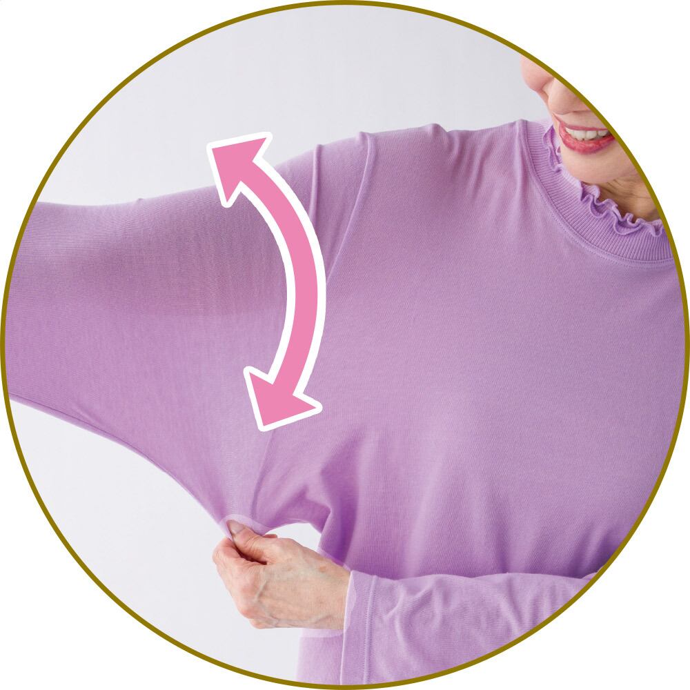 アームホールや袖もしっかり伸びるから、肩や腕が動かしづらい方もラクラク!