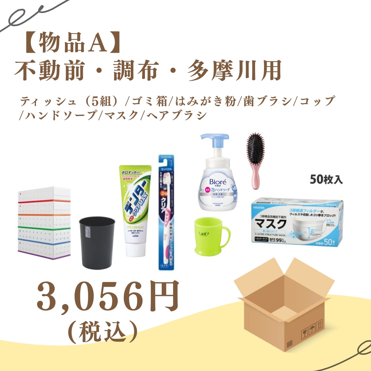 ティッシュ(5組)・ゴミ箱・歯磨き粉・歯ブラシ・コップ・