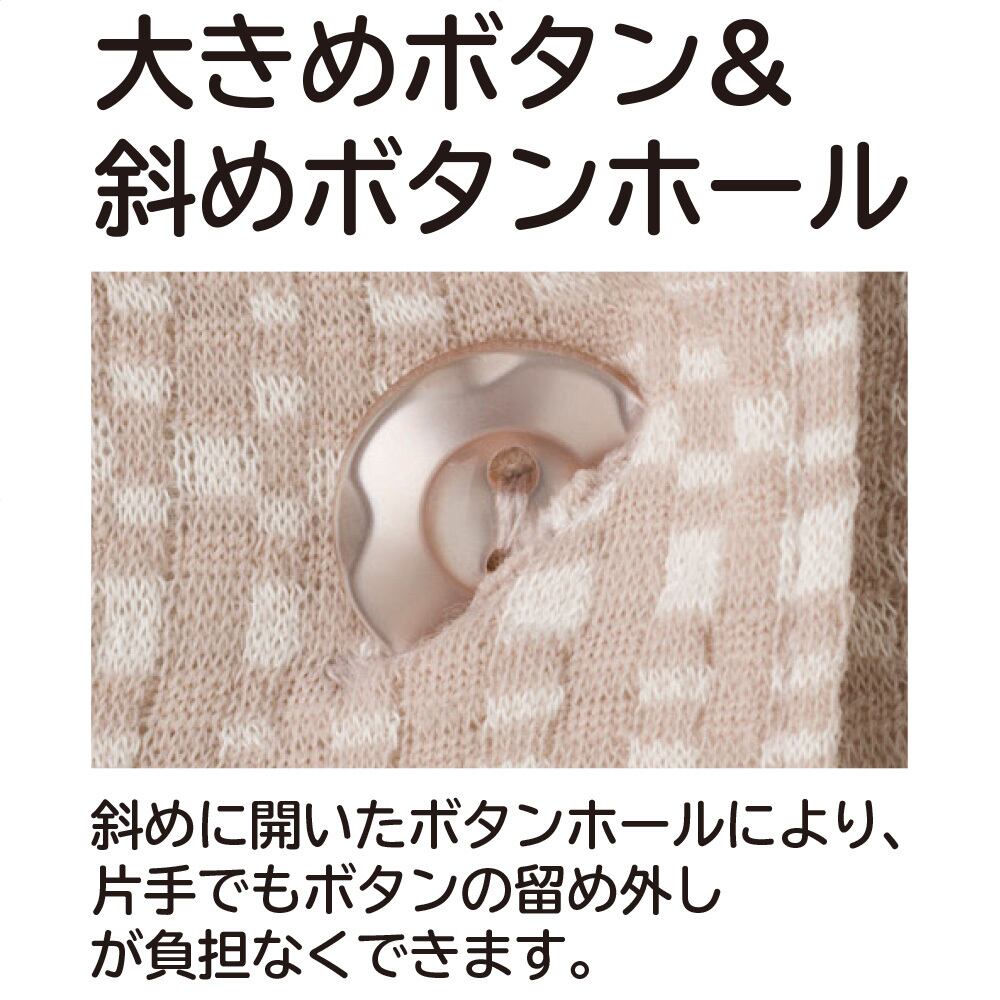 斜めに開いたボタンホールにより、片手でもボタンの留め外しが負担なくできます