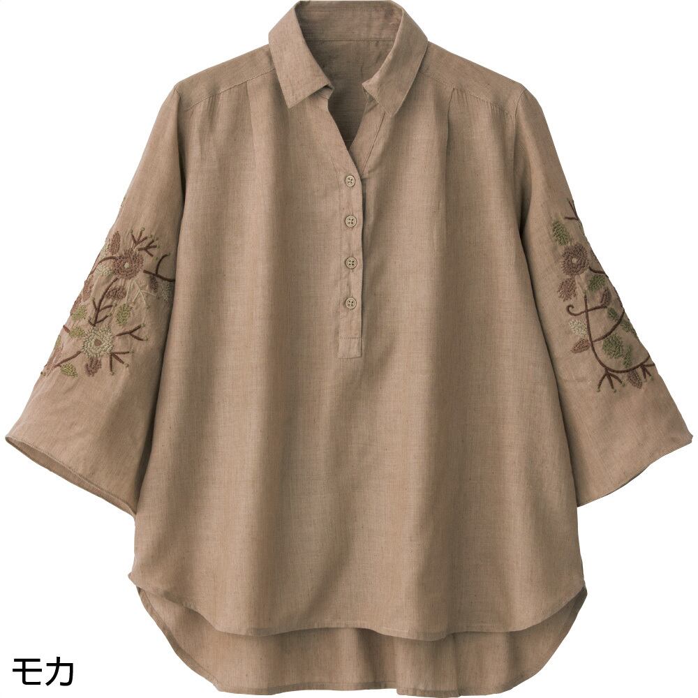 7分袖クラフト刺繍半開ブラウス
