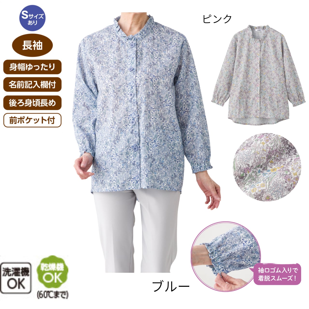 斜めに開いたボタンホールにより、片手でもボタンの留め外しが負担なくできます。