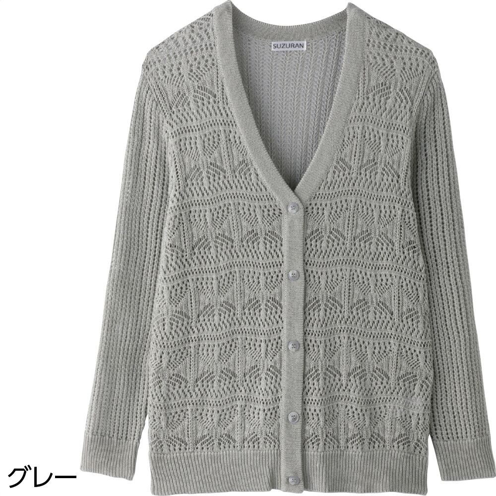 透かし柄V首カーディガン