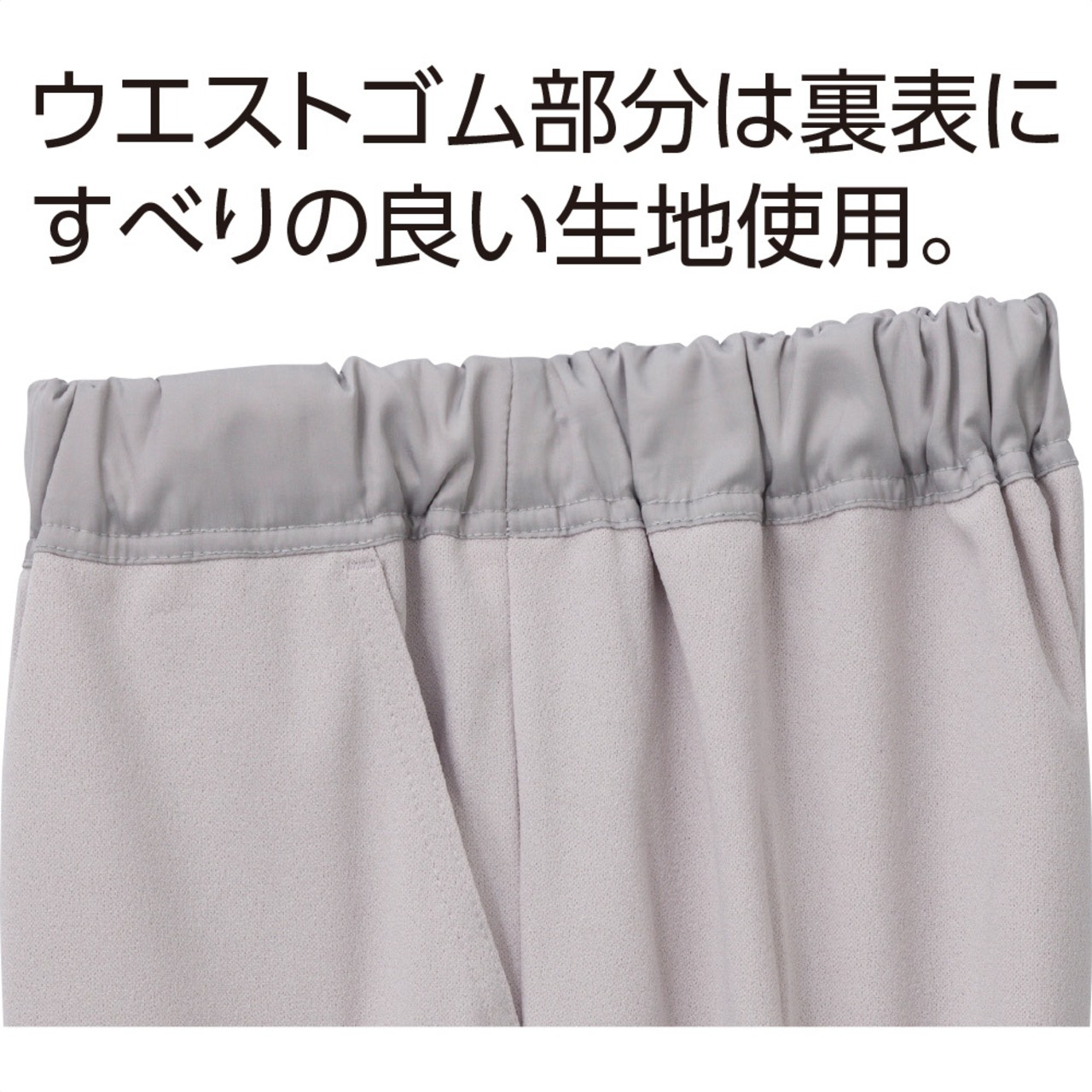 ウエストゴム部分は裏表にすべりの良い生地使用。