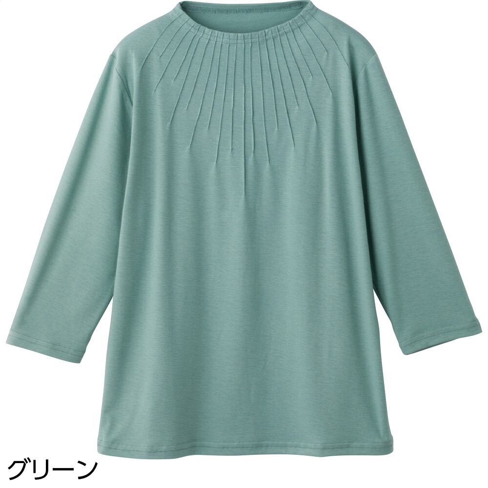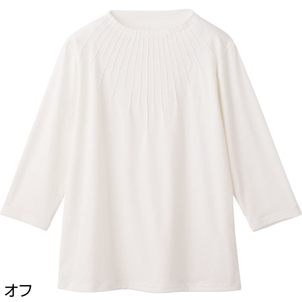 7分袖衿元ピンタックTシャツ